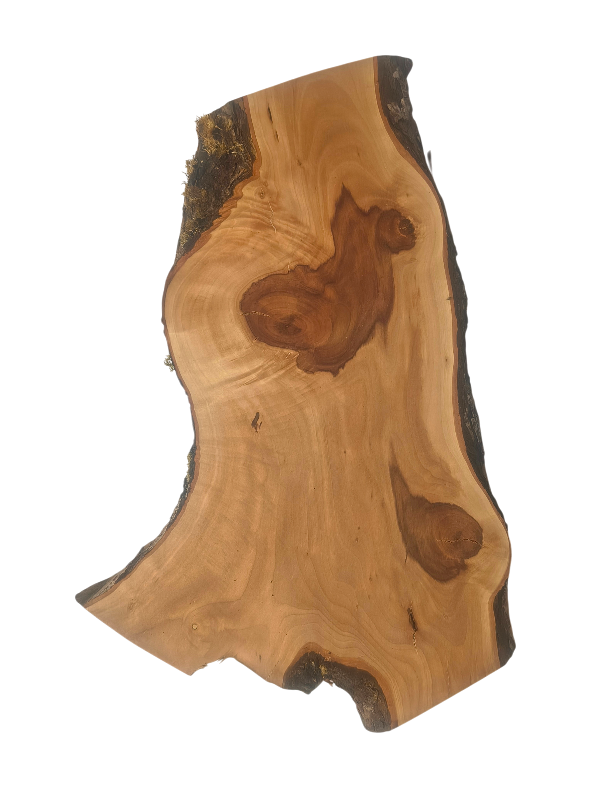 Deska wykonana z litego drewna jabłoni, pozyskana z jednego kawałka i suszona naturalnie przez 2 lata, aby zachować trwałość i piękno. Drewno jabłoni słynie z wyjątkowej twardości, a przy tym jest delikatne w obróbce – łączy w sobie praktyczność i subtelny, naturalny urok. Jego różowawo-brązowe odcienie i ciepłe usłojenie sprawiają, że każda deska staje się ozdobą kuchni i stołu.